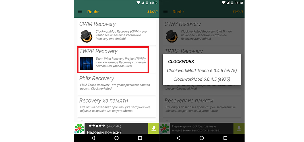 Простая установка CWM Рекавери или TWRP Рекавери через Rashr
