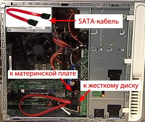 - ΠΠΎΠ΄ΡΠΎΠ΅Π΄ΠΈΠ½ΠΈΡΠ΅ ΠΊΠ°Π±Π΅Π»Ρ SATA. ΠΡ ΡΡΠ»ΡΡΠΈΡΠ΅ ΡΠ΅Π»ΡΠΎΠΊ, ΠΊΠΎΠ³Π΄Π° ΠΊΠ°Π±Π΅Π»Ρ ΠΏΡΠ°Π²ΠΈΠ»ΡΠ½ΠΎ Π²ΡΡΠ°Π½Π΅Ρ Π½Π° ΠΌΠ΅ΡΡΠΎ.