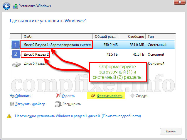 Выбор системного раздела