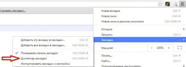 1.Зайти в меню и выбрать пункт «Закладки», а затем «Диспетчер закладок». Это же окно можно вызвать комбинацией клавиш Ctrl + Shift + O.