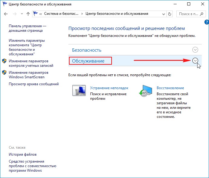 - Перейдите в раздел Система и безопасность – Центр безопасности и обслуживания.