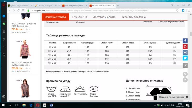 Бывает что продавцы используют и международные стандарты для указания размеров одежды, хотя это редкость.