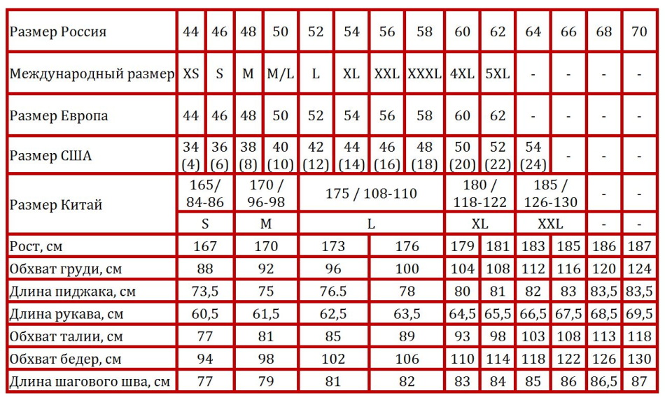 Таблица размеров одежды для мужчин на Алиэкспресс (Китай/Россия)