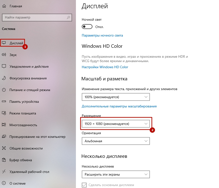 Правой клавишей мыши нажимаем по рабочему столу. В появившемся окне выбираем «Свойства» далее переходим на вкладку «Параметры» — для Windоws XP. Для Windows 7 — «Разрешение экрана» и устанавливаем разрешение 800 х 600. В моем случае это Windows 10 — кликнуть правой клавишей мыши по рабочему столу, выбираем пункт «Параметры экрана».После чего на вкладке «Дисплей» ищем пункт Разрешение и изменяем его. Недостатком данного способа является,то что увеличатся все ярлыки и меню Пуск.