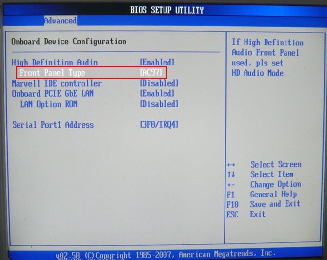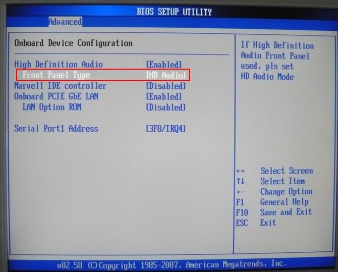 Примечание: если в диспетчере устройств нет ни звуковой карты, ни неизвестных устройств, есть вероятность, что звуковая карта отключена в БИОС компьютера или ноутбука. Поищите в БИОС (UEFI) в разделах Advanced/Peripherals/Onboard Devices что-то связанное с Onboard Audio и убедитесь, что оно включено (Enabled).
