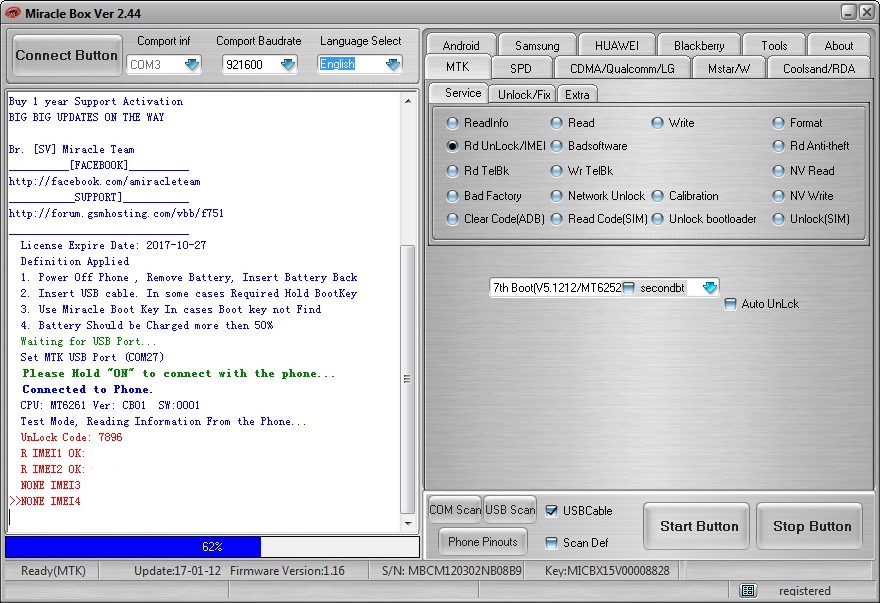 Repair and fix IMEI MT6752, MT6732, MT6753 64-bit SoC phones as well as IMEI on MTK / MediaTek MT6589 MT6589T MT6592 MT6595 MT6572 MT6582 MT6577 MT6516 phones,