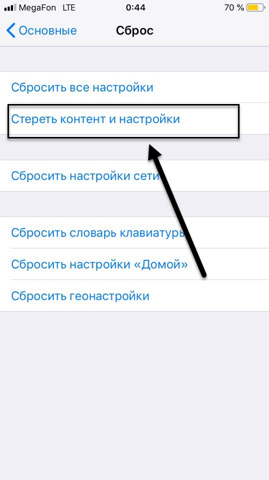Шаг 1 : Для этого вам необходимо сначала полностью стереть настройки и контент с вашего устройства.Это можно сделать, просмотрев «Настройки», затем «Общие», а затем нажмите «Сброс», а затем «Стереть все содержимое и настройки».