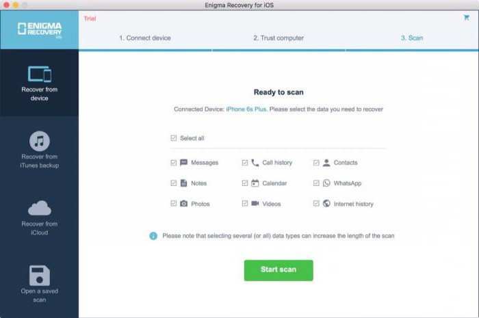 Восстановить удаленные СМС на iPhone4 и более поздних моделей возможно с помощью стороннего софта под названием Enigma Recovery. Процесс не сложнее, чем на андроиде: