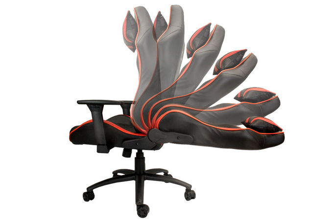 На четвертом месте нашего обзора лучших компьютерных кресел находится достаточно стильная модель, которая разработана специально для профессиональных геймеров. Это же кресло прекрасно подойдет для людей, деятельность которых связана с продолжительной работой за компьютером. Оно отличается большим набором различных полезных функций. Регулировка высоты осуществляется при помощи специального рычага, находящегося справа под сиденьем. Сбоку есть механизм, отвечающий за степень регулировки высоты кресла. Положение можно изменять в пределах от 90 до 180 градусов, то есть кресло можно зафиксировать даже в горизонтальном положении. Механизм качания хорошо продуман – есть 12 уровней мягкости, причем при избавлении от нагрузки спинка модели будет возвращаться в строго вертикальное положение.