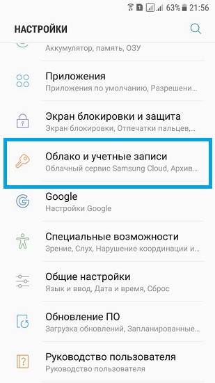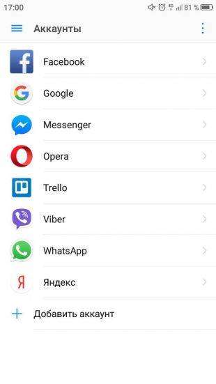 - Перейдите в настройки и выберите пункт “Аккаунты”.
