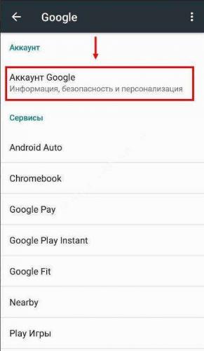 - Нажмите на “Google”, в следующем окне — на “Аккаунт Google”.