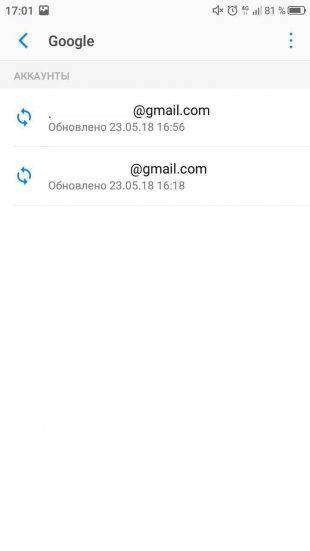 - Появится список прикрепленных к устройству аккаунтов, из которого нужно выбрать желаемый — то есть, Google.