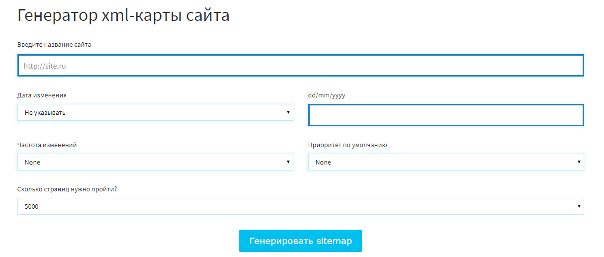 Чтобы создать карту сайта, вы можете использовать онлайн-инструмент, такой как XML-Sitemaps.com, который просканирует ваш веб-сайт (до первых 500 URL-адресов) и предоставит вам XML-карту сайта для загрузки в конце.