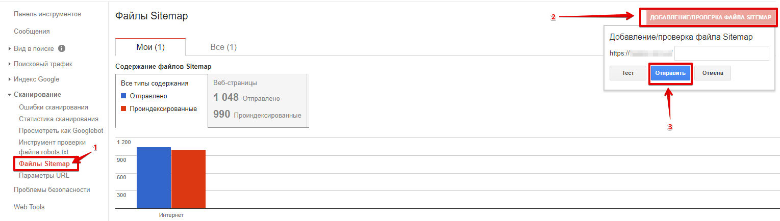 Создав индекс файлов Sitemap, отправляйте его в Google так же, как и стандартный файл Sitemap.