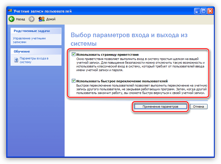 - Переходим по ссылке «Изменение входа пользователей в систему» .