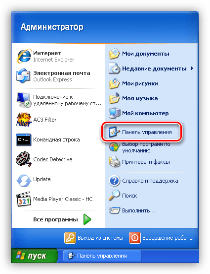 - Открываем меню «Пуск» и переходим к «Панели управления» .