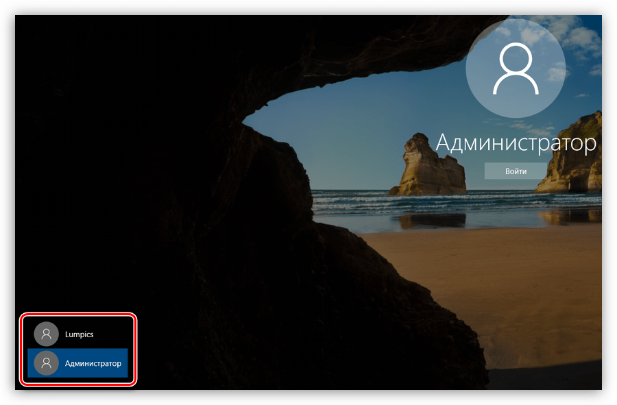После выхода и клика и разблокировки экрана появятся плитки с именами пользователей, в том числе и Администратора. Вход также осуществляется стандартным способом.