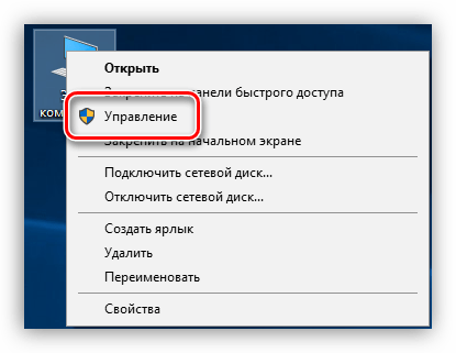 - Кликаем правой кнопкой мыши по значку компьютера на рабочем столе и выбираем пункт «Управление»
