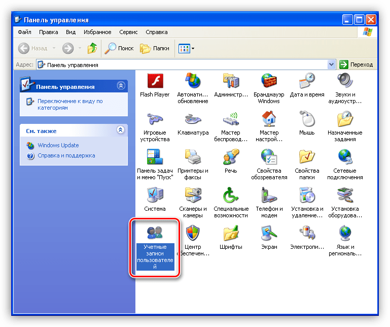 - Дважды кликаем по разделу «Учетные записи пользователей»