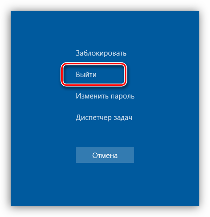 Для того чтобы войти в Windows под этой учетной записью, нажимаем комбинацию клавиш CTRL+ALT+DELETE и в открывшемся меню выбираем пункт «Выйти» .
