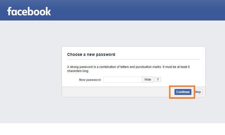 - Создайте новый пароль и подождите, пока Facebook выполнит вход.