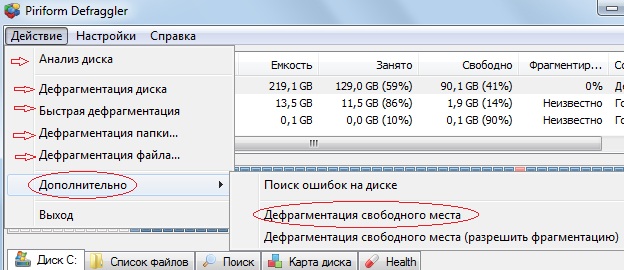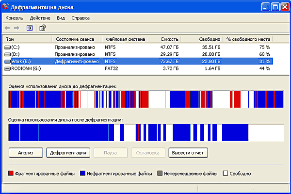 Дефрагментация дисков вручную