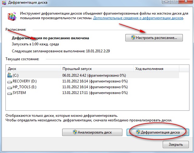 Дефрагментация жесткого диска + Настройка расписания дефрагментации в Windows 7