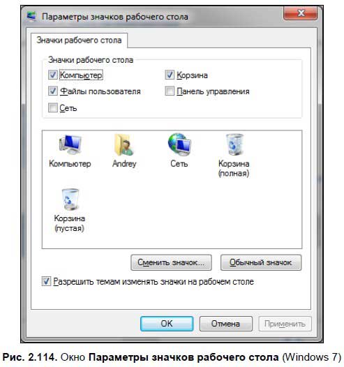 Выберите требуемый параметр:крупные, обычные или мелкие значки. Значение по умолчанию — обычные значки.