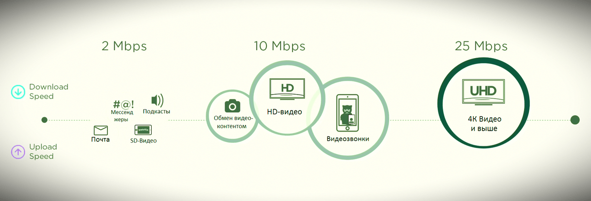 Не забывайте, что на Internet соединение может влиять огромное количество негативных факторов. Старайтесь иметь «скорость в запасе». Тогда вы не будете волноваться, что просмотр фильма или 4К видео на Ютубе оборвётся на самом интересном моменте или будет тормозить.