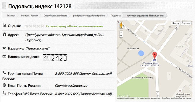 - Изменение почтового индекса