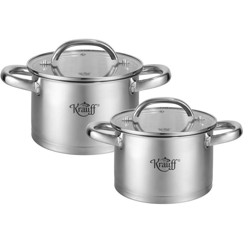 Этот набор включает в себя шесть предметов посуды, которые необходимы любому повару, а также четыре крышки. Все кусочки большие, так что за один раз можно приготовить кастрюлю супа на всю семью. Изготовленные из нержавеющей стали внутри и снаружи с алюминиевым сердечником, они созданы для работы, а отличительная форма выделяет их среди обычной посуды.