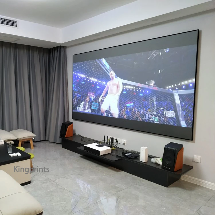 При использовании экрана с фиксированной рамкой материал экрана натягивается на металлическую раму. Поскольку фиксированному экрану не нужно скатываться вверх и вниз, он может поддерживать плотную натянутую поверхность для идеально гладкого изображения.