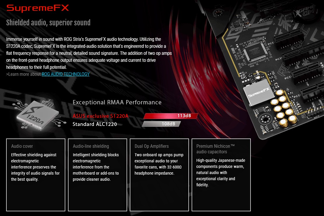 Как и все платы Strix, она имеет стильный черный дизайн с RGB-подсветкой на крышке ввода-вывода.