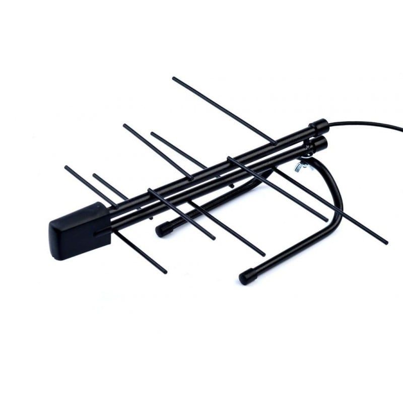 Такая уличная антенна для установки на даче — неплохой выбор, она компактна, хорошо улавливает сигнал на нескольких диапазонах, все ее составные элементы закреплены на общей стреле.