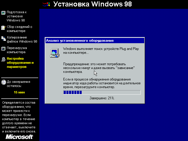 Шаг 9. Процесс распаковки, настройки компонентов и обновлений займет много времени, придется подождать.