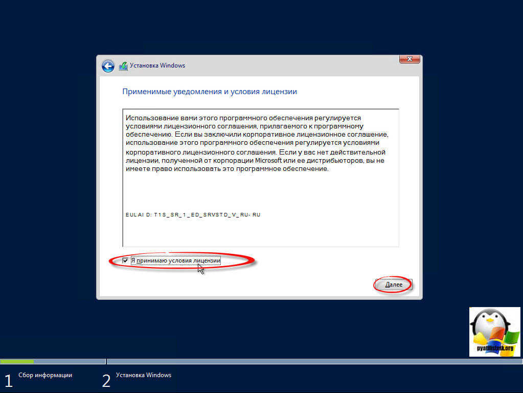 Шаг 6. В “Условиях лицензионного соглашения” выбрать “Принять”, затем “Полную установку”.