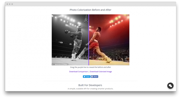 Сервис Colorize Photos создан группой исследователей, занимающихся нейронными сетями, для демонстрации одного из вариантов практического применения искусственного интеллекта. В данном случае он используется для раскрашивания чёрно-белых фотографий. Любой посетитель сайта может ввести в поле ссылку на какой-нибудь старый снимок и нажатием одной кнопки превратить его в цветной.
