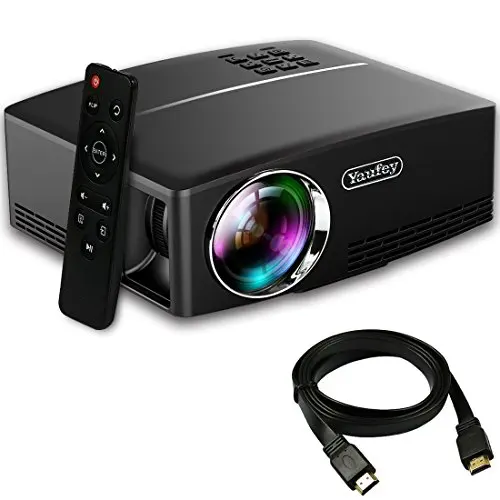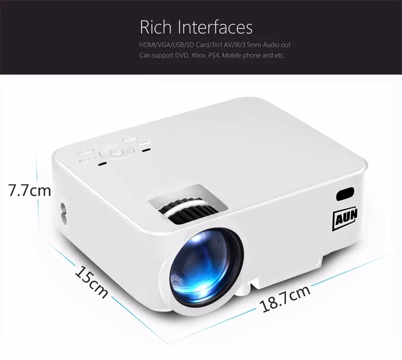 По заявлению производителя его яркость достигает 5000 люменов, а разрешение — 1920×1080 пикселей. Есть широкий выбор интерфейсов: HDMI, USB, SD. Размер проекции может достигать 120 дюймов, сам проектор стоит размещать на расстоянии в 1-2 метра. Он поддерживает множество форматов, его можно подключать к смартфонам, планшетам и даже игровым приставкам. Картинка воспроизводится с соотношением сторон 16:9 или 4:3. В комплекте дополнительно идёт пульт управления. Если учитывать возможности этого проектора и его стоимость, то он однозначно достоин покупки.