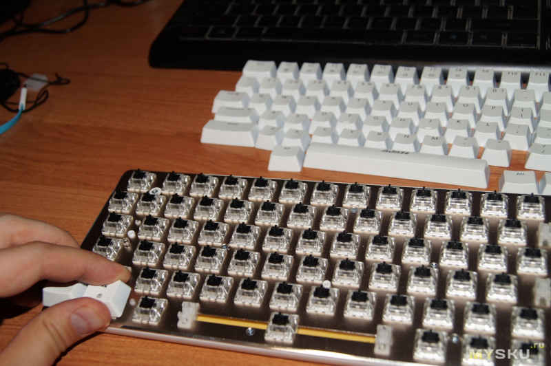Большинство аппаратов очень просто устроены. Любая механическая клавиатура легко разбирается и собирается, потому что состоит из двух деталей самого корпуса и платы, отвечающей за печать. Части соединены между собой болтами, которые легко раскрутить. Многие производители девайсов добавляют в комплект к ним удобные приспособления для снятия кнопок.