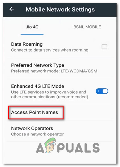 Несколько пользователей Android сообщили, что им удалось устранить ошибку Возникла проблема с сетью [503] путем сброса имен точек доступа к значениям по умолчанию.