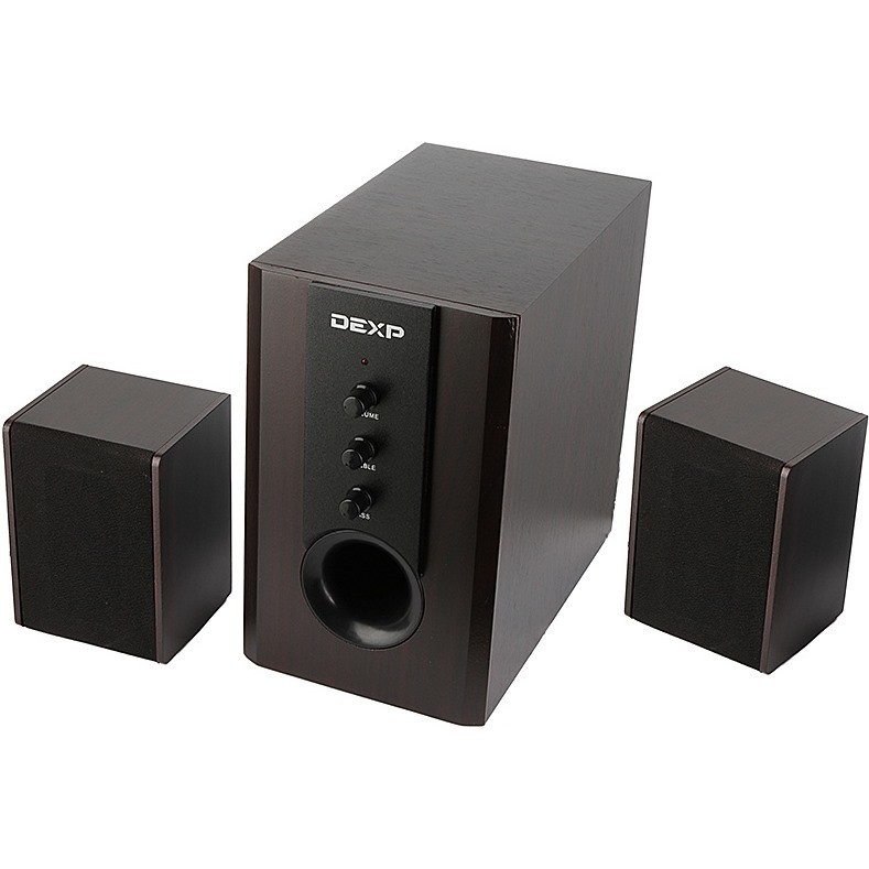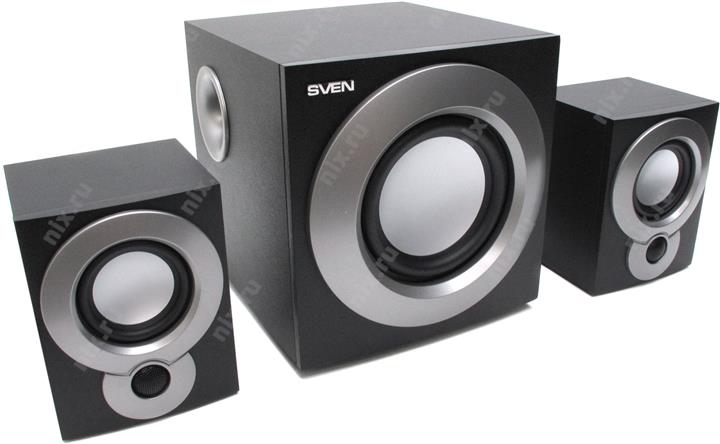 Две колонки. Обеспечивают стереофоническое звучание. Минимальный набор для домашнего компьютера. На одной из таких колонок обычно стоит регулятор громкости и кнопка включения. Возможно наличие входа для наушников, что бывает удобно, когда короткие наушники не дотягиваются до системного блока.