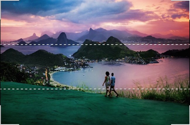 ΠΠ° ΡΠΎΡΠΊΠ°Ρ ΠΏΠ΅ΡΠ΅ΡΠ΅ΡΠ΅Π½ΠΈΡ ΠΈ Π»ΠΈΠ½ΠΈΡΡ ΡΡΠΎΠΉΒ ΡΠ΅ΡΠΊΠΈ ΠΏΡΠΈΠ½ΡΡΠΎ ΡΠ°ΡΠΏΠΎΠ»Π°Π³Π°ΡΡ Π²Π°ΠΆΠ½ΡΠ΅ ΠΎΠ±ΡΠ΅ΠΊΡΡ ΠΈΠ»ΠΈ Π»ΠΈΠ½ΠΈΠΈ ΡΠΎΡΠΎΠ³ΡΠ°ΡΠΈΡΡΠ΅ΠΌΠΎΠ³ΠΎ ΠΈΠ·ΠΎΠ±ΡΠ°ΠΆΠ΅Π½ΠΈΡ. ΠΠ°ΠΏΡΠΈΠΌΠ΅Ρ,Β ΡΠΎΠ²ΠΌΠ΅ΡΠ°ΠΉ Π»ΠΈΠ½ΠΈΡ Π³ΠΎΡΠΈΠ·ΠΎΠ½ΡΠ° Ρ Π½ΠΈΠΆΠ½Π΅ΠΉ Π»ΠΈΠ½ΠΈΠ΅ΠΉ ΡΠ΅ΡΠΊΠΈ, Π΅ΡΠ»ΠΈ Π½ΡΠΆΠ½ΠΎ ΡΠ΄Π΅Π»Π°ΡΡ Π°ΠΊΡΠ΅Π½Ρ Π½Π° Π½Π΅Π±ΠΎ. ΠΠ°ΠΊ Π½Π° ΡΡΠΎΠΉ ΡΠΎΡΠΎΠ³ΡΠ°ΡΠΈΠΈ Ρ ΠΎΠ΄ΠΈΠ½ΠΎΠΊΠΎΠΉ ΡΠΎΡΠ½ΠΎΠΉ Π½Π° Π²Π΅ΡΡΠΈΠ½Π΅ ΠΠ΅ΠΌΠ΅ΡΠ΄ΠΆΠΈβ¦Β