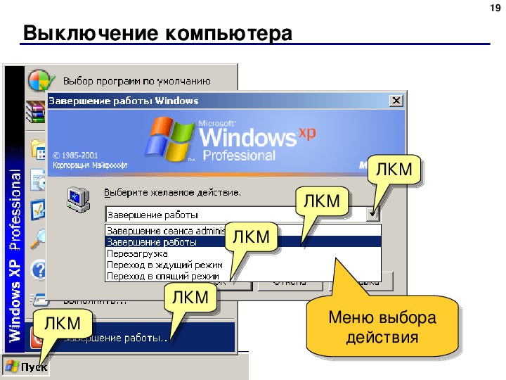 Завершение работы компьютера, перевод его в спящий режим или в режим гибернации