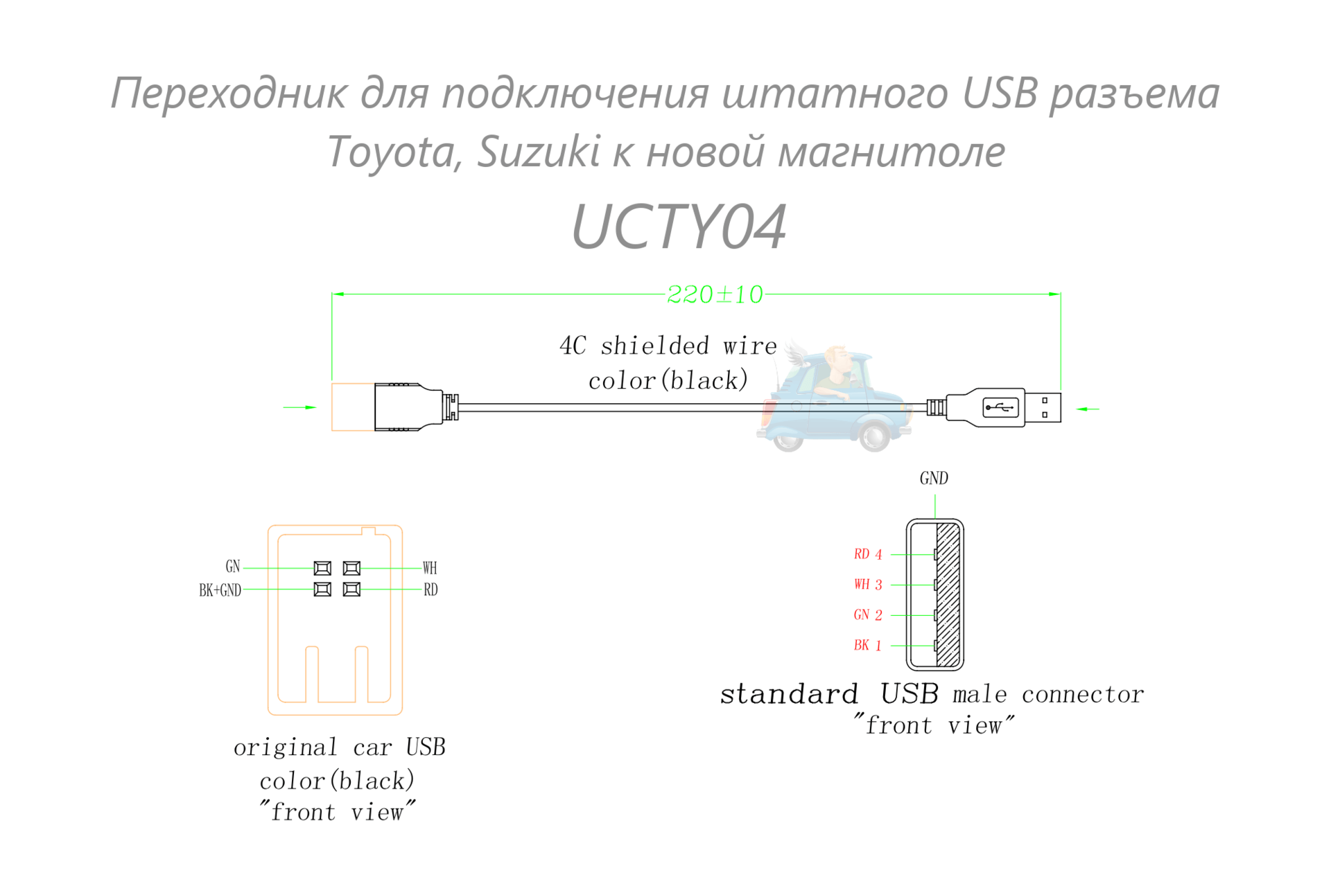 0Распайка проводов в модели USB 2.0 располагается в следующем порядке: