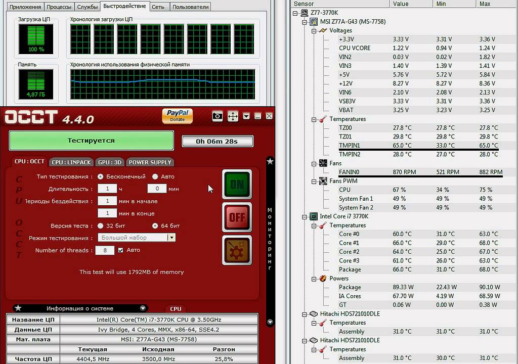 И наконец Linpack обеспечивает практически полную (>90%) загрузку вычислительных устройств.