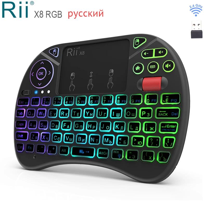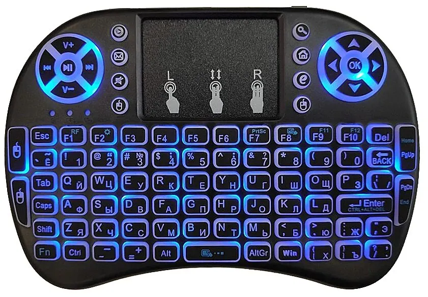 Он имеет трекпад с правой стороны с кнопками левой и правой кнопки мыши под ним, поэтому вы можете легко перемещать курсор на ПК с домашним кинотеатром или Smart TV, не вставая с дивана. В правом верхнем углу также есть уникальный джойстик с кнопками левой и правой кнопки мыши в правом верхнем углу задней части клавиатуры, которые можно использовать вместо традиционного трекпада. Слева от джойстика есть прокрутка громкости, а клавиши F используются как горячие клавиши для управления мультимедиа.