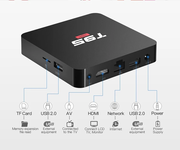 Он поддерживает потоковое видео с качеством Ultra HD до 8K 24 кадра в секунду. Аппаратное обеспечение HEVC H.265 3D HDR10 экономит 50 % ресурса полосы пропускания. Эта телевизионная приставка может быть подключена к двойному сигналу Wi-Fi 2,4–5,8 ГГц и Bluetooth 4.1.