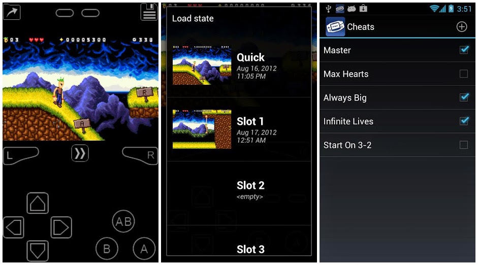 gba, GBA.emu также поддерживает файлы ZIP, RAR или 7Z, поэтому вам не придется извлекать файлы и перегружать хранилище на вашем телефоне Android. Доступны состояния сохранения, и если вы используете VBA-M, вы можете мгновенно перенести эти сохранения со своего ПК на GBA.emu. Кроме того, вы можете подключить контроллер Bluetooth и создать собственные профили ключей, что доступно не во всех эмуляторах. Наконец, вы также можете использовать чит-коды, что дает вам почти реальный опыт.