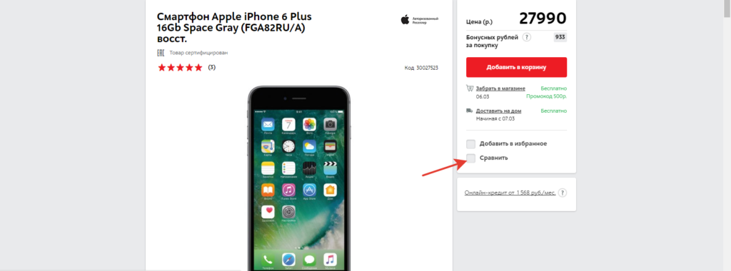А вот на сайте «М.Видео» поле ввода промокода скрыто за ссылкой, внимание пользователей не привлекается лишний раз.