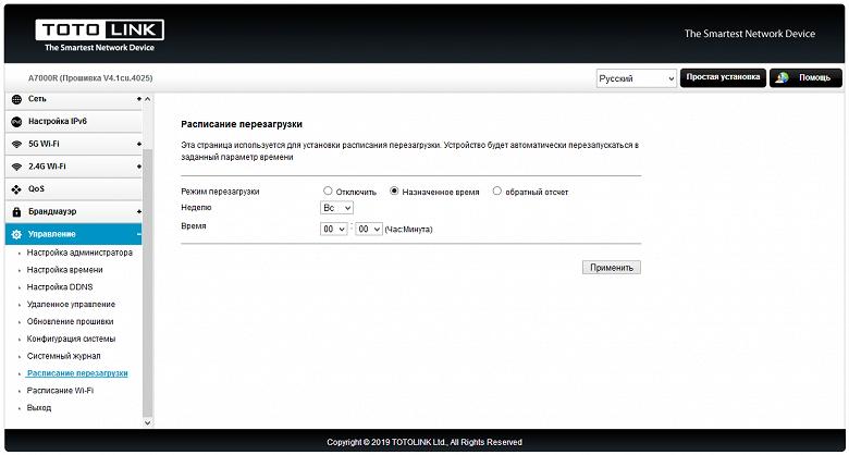 - Нажмите «Перезагрузка», дождитесь пока роутер снова включится и установится соединение.